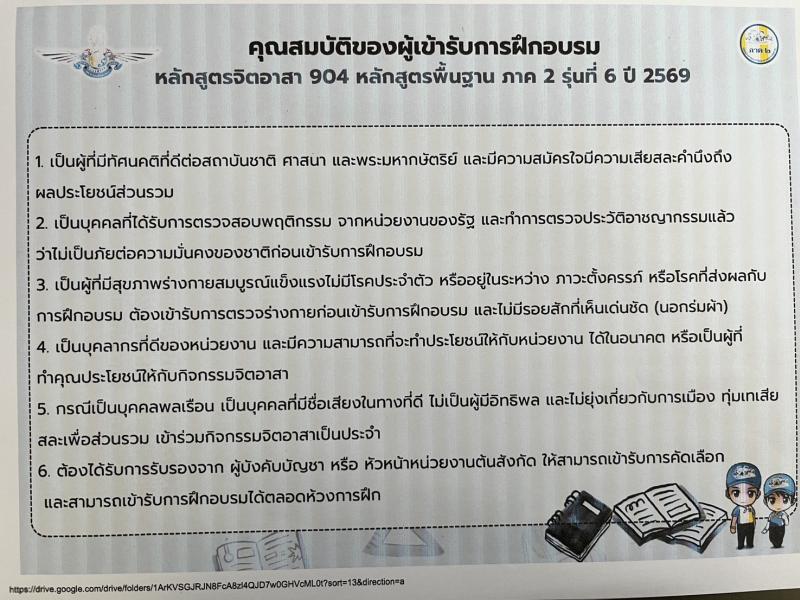 description ขอประชาสัมพันธ์เชิญชวนสมัครอบรมหลักสูตรจิตอาสา 904 หลักสูตรพื้นฐาน ภาค 2 รุ่นที่ 6 ปี 2569 person admin