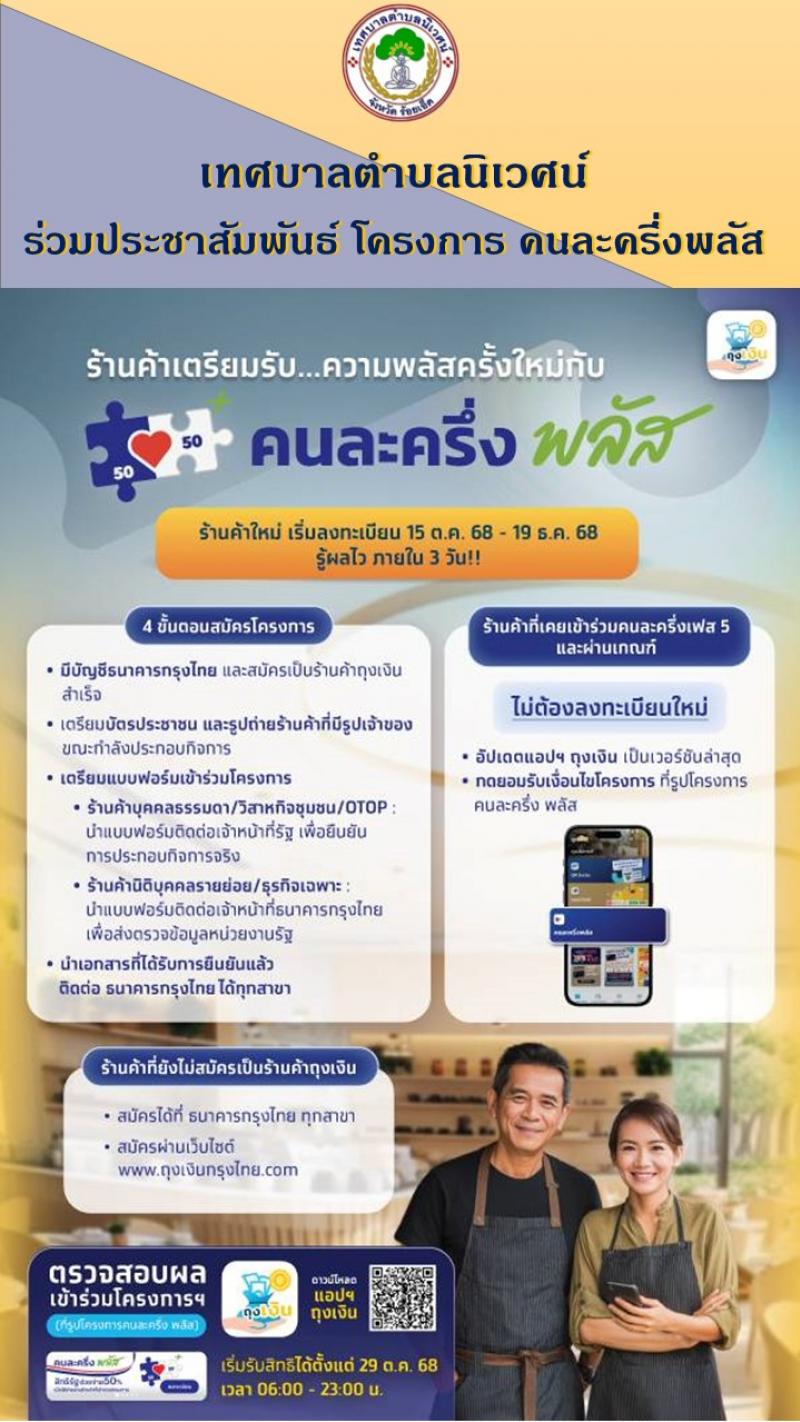 รายละเอียด : #แจ้งเตือนผู้ประกอบการร้านค้าที่เข้าร่วมโครงการคนละครึ่ง พลัส ให้ระมัดระวังมิจฉาชีพที่แอบอ้างหน่วยงานของรัฐที่เกี่ยวข้องกับการดำเนินโครงการฯ