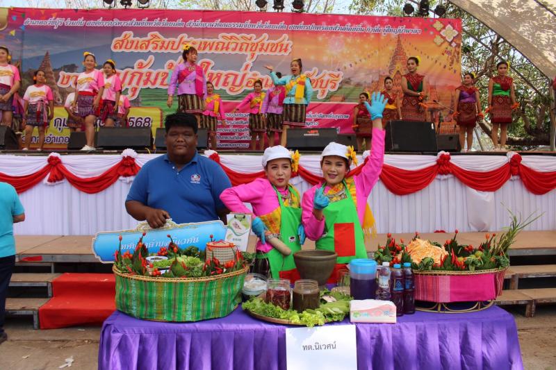 รายละเอียด : วันศุกร์ที่ 21 กุมภาพันธ์ 2568 เวลา 09.00 น.นายณรงค์ฤทธิ์ นาอ่อน นายกเทศมนตรีตำบลนิเวศน์ พร้อมด้วยคณะผู้บริหาร สมาชิกสภา ผู้นำชุมชนตำบลนิเวศน์ พนักงาน ลูกจ้าง เทศบาลตำบลนิเวศน์ ร่วมงานประเพณีวิถีชุมชนบุญกุ้มข้าวใหญ่ อำเภอธวัชบุรี ประจำปี พ.ศ. 2568 โดยภายในงานมีพิธีเจริญพระพุทธมนต์ พิธีสู่ขวัญข้าวและบูชาพระแม่โพสพ ชุดการแสดงโรงเรียนราชประชานุเคราะห์ 63 จังหวัดร้อยเอ็ด ชมการแสดงกลองยาวประยุกต์ พิธีรำบวงสรวง โดยตัวแทนสตรีทั้ง 12 ตำบล ไม่น้อยกว่า 300 คน มีการจัดแสดงสินค้า OTOP การประกวดเถียงนาประเภทสวยงาม การประกวดเถียงนาประเภทเศรษฐกิจพอเพียง การประกวดมหัศจรรย์สีสันแห่งไฟในเถียงนา การประกวดแข่งขันส้มตำลีลาเพื่อสุขภาพ แข่งขันสนูว่าว การประกวดร้องเพลงผู้นำท้องถิ่น/ท้องที่ พร้อมหางเครื่องท้องถิ่นท้องที่ โดยมี นายชูศักดิ์ ราชบุรี รองผู้ว่าราชการจังหวัดร้อยเอ็ด เป็นประธานในพิธีเปิดงาน ณ สนามหน้าที่ว่าการอำเภอธวัชบุรี จังหวัดร้อยเอ็ด