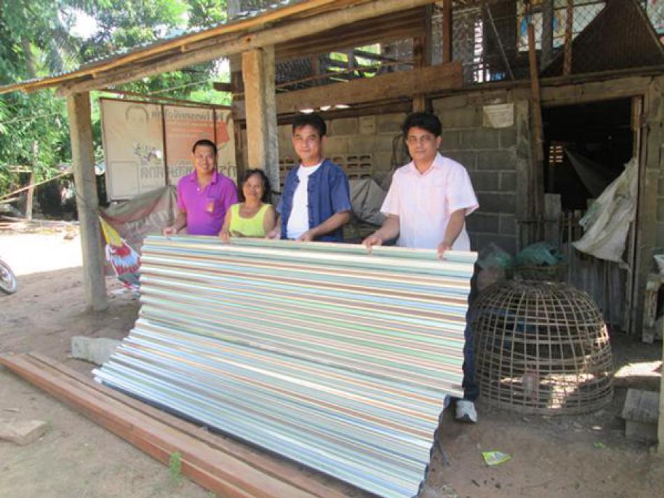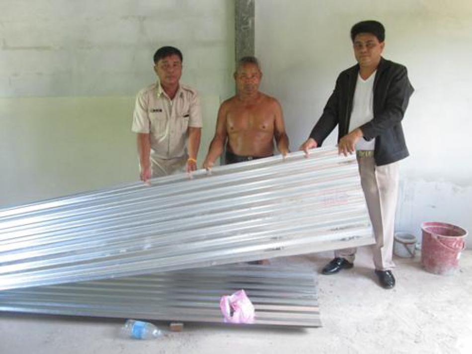 เทศบาลตำบลนิเวศน์มอบสังกะสี เยี่ยมชาวบ้านที่ถูกวาตภัย (1 ภาพ) [31 มีนาคม 2558]