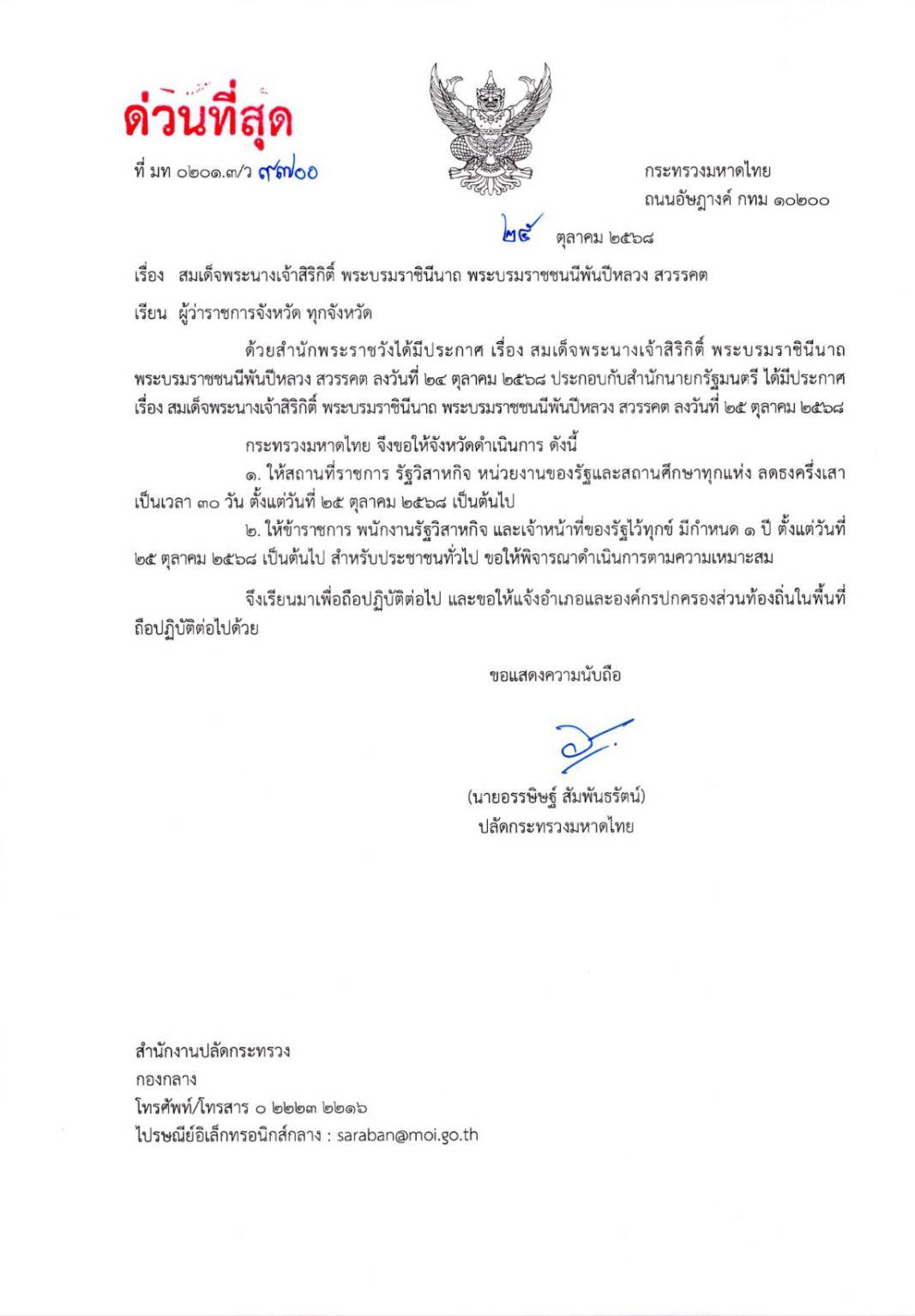 สมเด็จพระนางเจ้าสิริกิติ์ พระบรมราชินีนาถ พระบรมราชชนนีพันปีหลวง สวรรคต