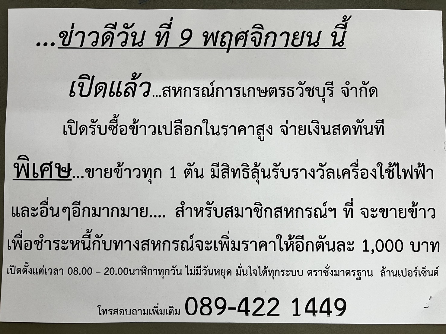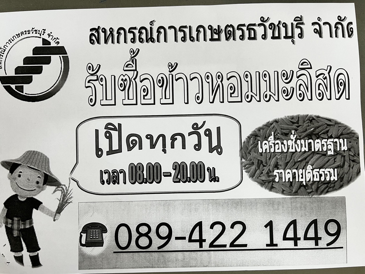ประชาสัมพันธ์สหกรณ์การเกษตรธวัชบุรี จำกัด เปิดรับซื้อข้าวเปลือกนาปี ประจำปี พ.ศ.2568